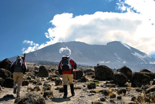 An early start for the summit on steep heavy scree to arrive at Gilman’s Point at 18640ft/5681m in time to see the sun rise. Those who want to reach the highest point in Africa can take the approximately three hour excursion to Uhuru Peak 19340/5896m passing close to the spectacular glaciers and ice cliffs that still occupy most of the summit area. The descent to Kibo is surprisingly fast and after some refreshment, continue the descent to reach the final campsite at Horombo at 12000ft/3700m taking 11 to 15 hours. Overnight Horombo Camp.