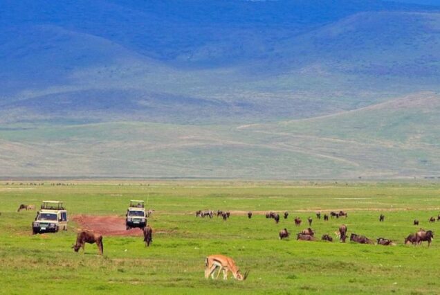 After breakfast descend 670m into the crater floor. This is for for game viewing afterwards breaking for lunch at the Lerai picnic site. The crater is 14.5km wide and is basically home to all the bigfive.Additionally you will see Hippos, cheetah,antelopes spotted hyena .Other species commonly seen are flamingoes . Dinner and overnight at Simba campsite.